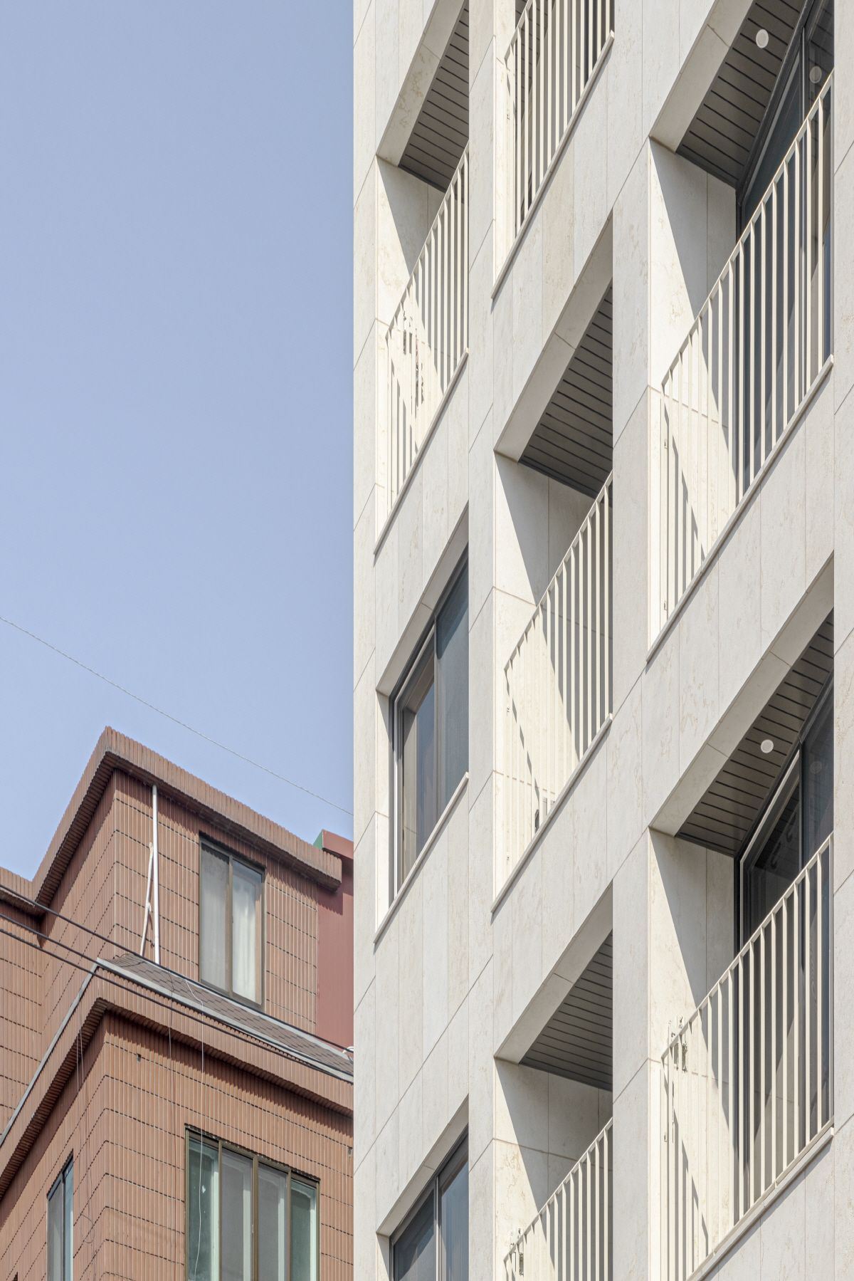 외단열시스템 (구조벽체 바깥에 단열재를 붙이고 단열재 위에 탄성이 있는 도장으로 마감하는 공법)의 외벽마감이 공사를 하면서 석재로 바뀌는 바람에 줄눈 나누기를 처음부터 의도할 수 없었던 점, 입면 표정의 5할을 담당할 난간의 형태가 바뀐 점이 큰 아쉬움으로 남지만, 각각의 프로젝트는 각자 나아가는 방향이 있다. 처음부터 어떤 방향으로 흘러가리라는 걸 아는 프로젝트도 있고 여정의 가운데에서 큰 변곡점을 갖는 프로젝트도 있다. 그렇게 흘러간다는 걸 받아들이고 그 상황에서 건축가가 할 수 있는 것을 한다. 그게 프로다, 마.