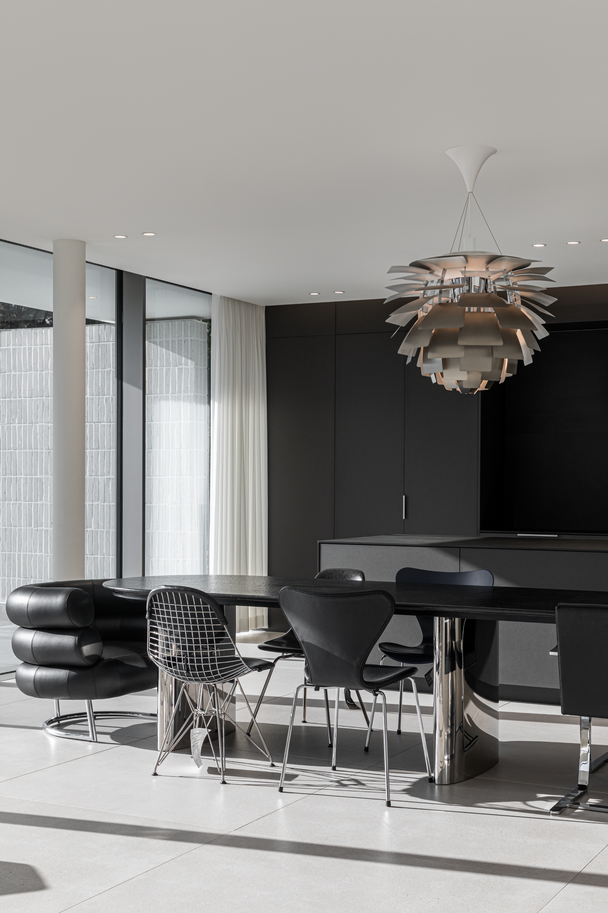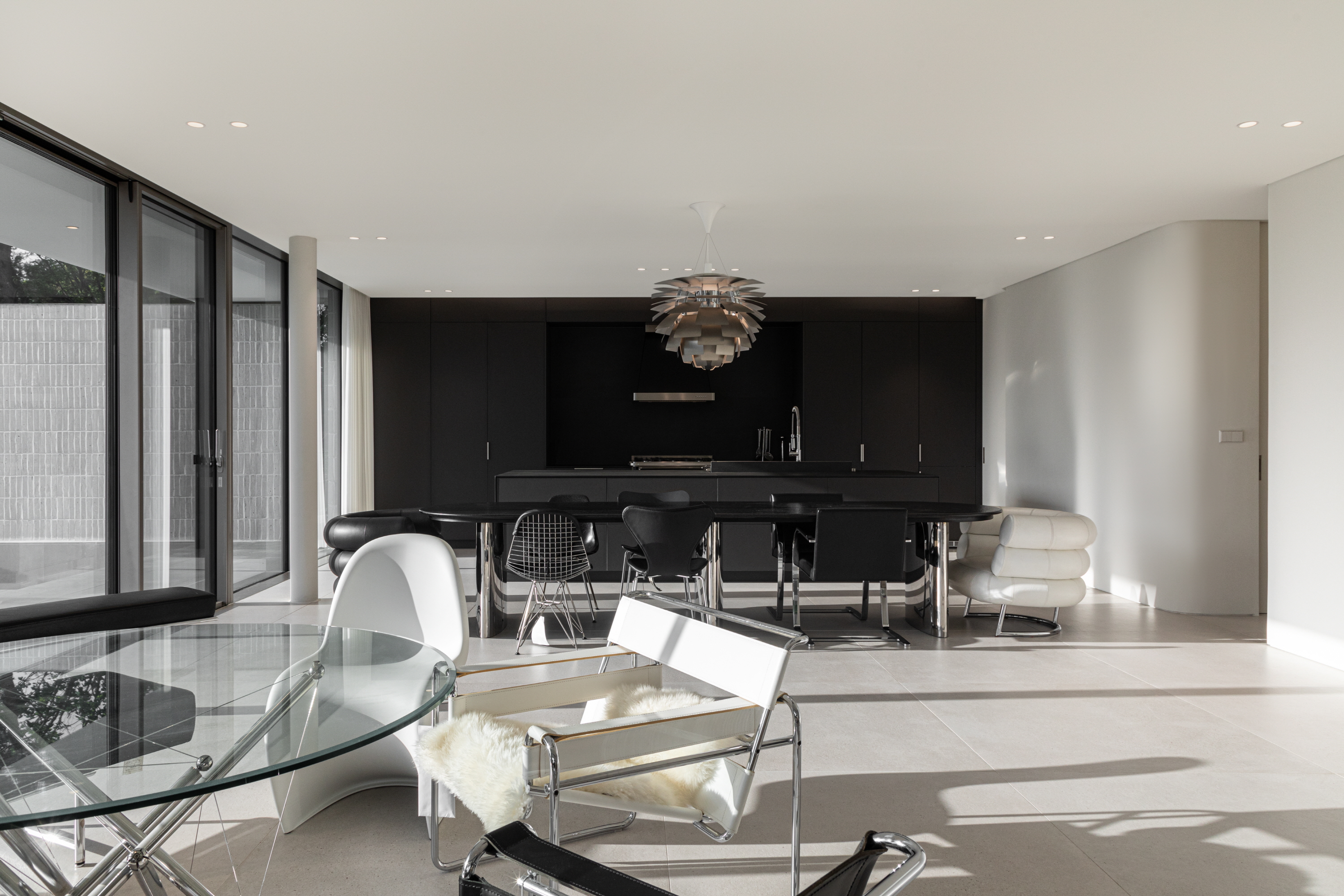 ‘양평사색’의 건축은 이 곳에서의 일상과 그에 필요한 모든 것들을 담는 그릇의 역할에 충실하기를 바랐다. 1층은 구획되지 않은 큰 공간으로 주말에 지인들을 초대하여 파티를 할 수 있는 공간이면서 건축주의 직업상 소품촬영의 스튜디오로 쓸 수 있는 공간으로 계획되었다. 가구에 관심이 많은 건축주를 위해서도 건축은 배경이자 가구를 담는 그릇의 역할이 되도록 의도했다. 건축적 형태 역시 지극히 중성적이어서 스스로를 드러내거나 어떤 말을 걸어오지 않는다.