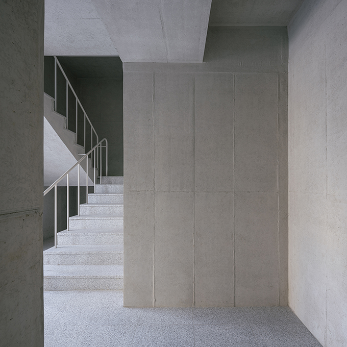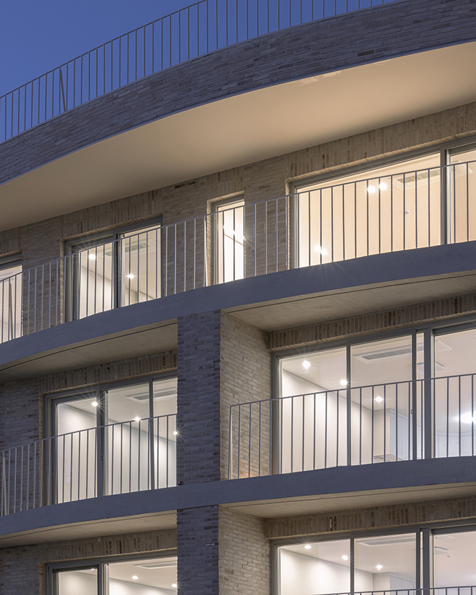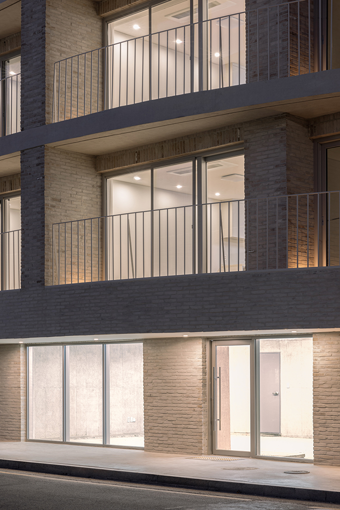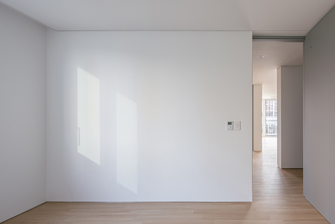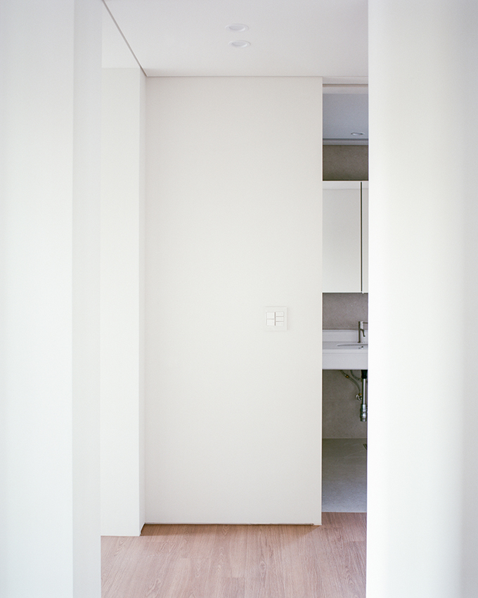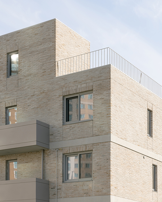 옛 필지와 도시계획에 따른 새로운 도로가 혼재하고 아직은 고즈넉한 풍광이 펼쳐지는 김포 사우동. 차량의 통행이 많지 않고 건너편 부지와 충분한 이격이 있는 땅이어서 충분히 여유로운 발코니를 계획할 수 있었다.