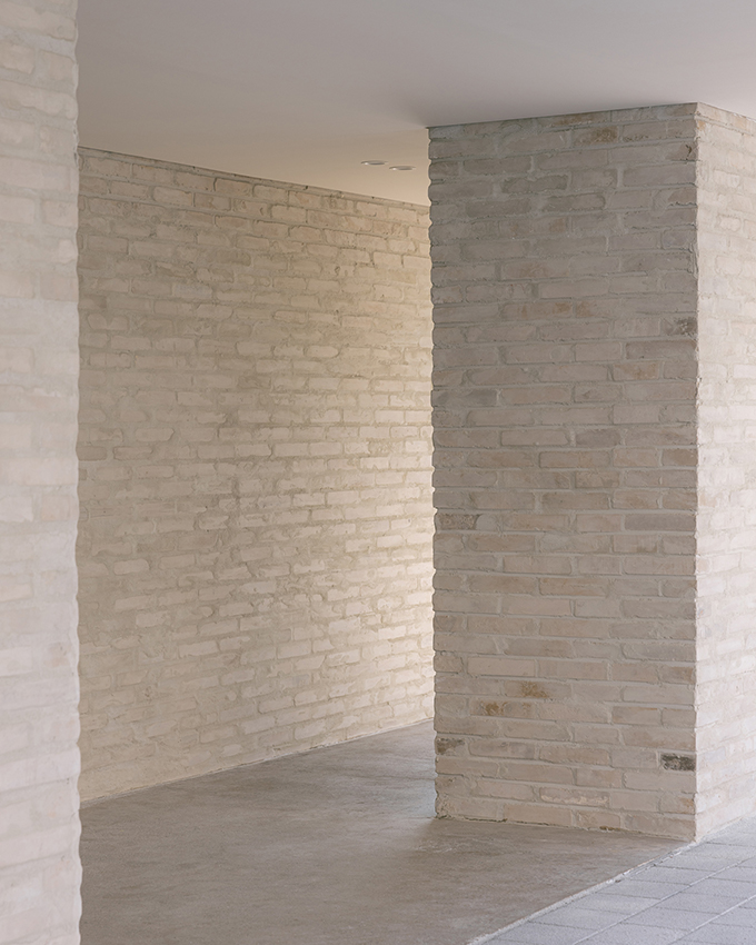 마지막 줄눈의 처리를 벽돌의 면과 동일하게 맞추거나 살짝 덮는 방식으로 영어권에서는 slurry pointing이라고도 하고, 우리말로는 내가 아는 정식 명칭은 없으나 현장용어로 떡메지라고도 부르는 방식. 수공예적인 텍스처의 느낌을 살릴 수 있으나 일일이 사람의 손으로 만들어내야 하기에 공사비의 압박이 심한 이번 현장에서의 처음 시도가 쉽지만은 않았다.