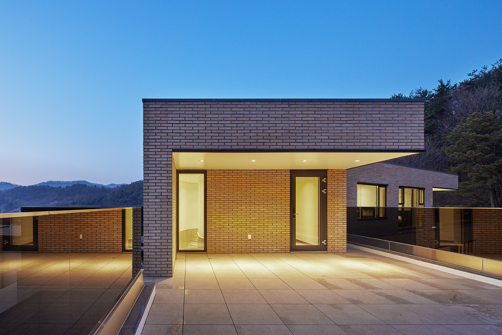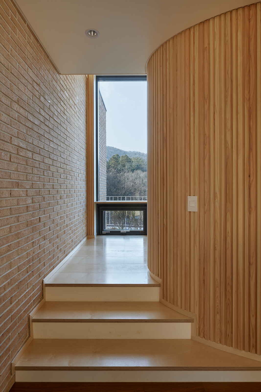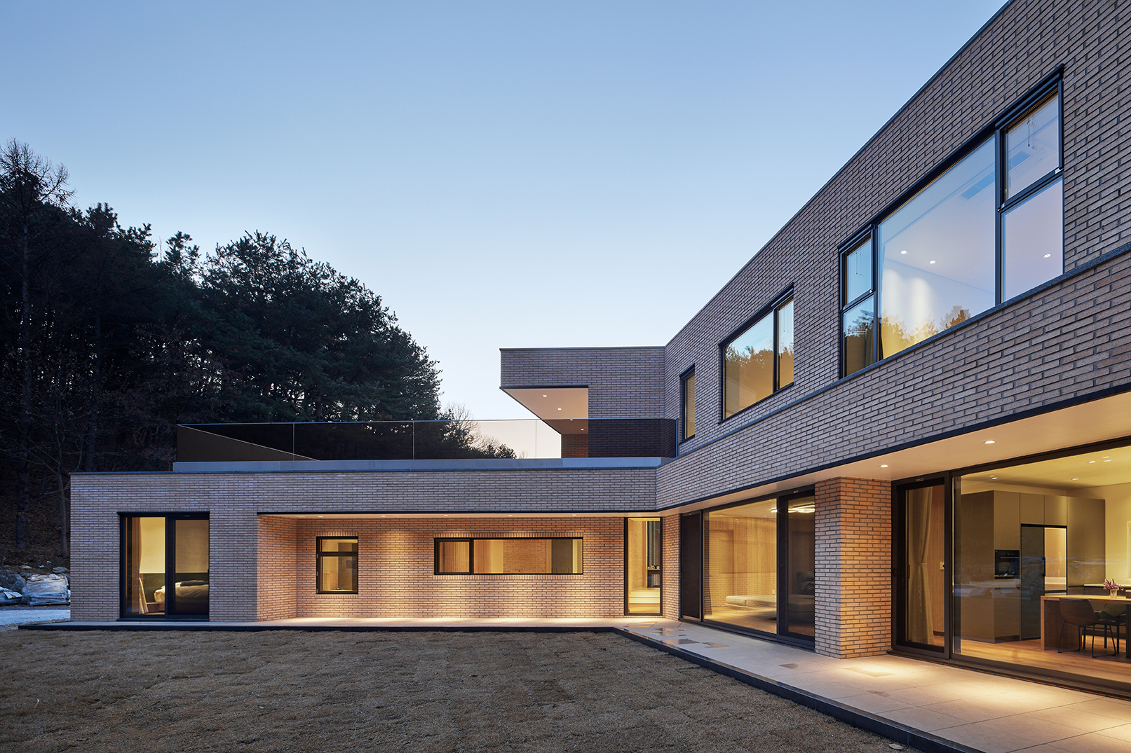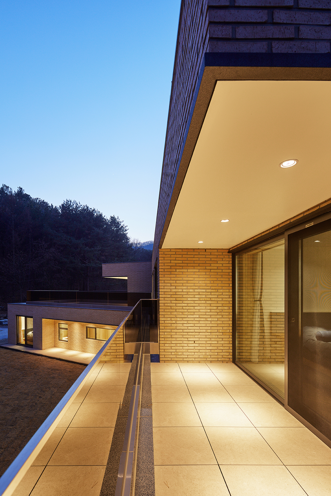 집은 진입도로를 등지고 나만의 내밀한 정원을 감싸 안는 형태가 되어 창을 절제한 북측면에 비해 편백나무 욕조가 있는 안방 욕실에도 부담 없이 큰 창을 두고, 식당은 두 면에 폴딩도어로 열 수 있게 하여 개방감을 극대화했다. 1층의 긴 처마는 집의 수평성을 강조하고 일조량을 조절할 뿐 아니라, 처마 아래 바닥의 포장을 따라 여유로운 외부 공간을 만든다. 2층 테라스의 기둥 없이 2.4미터가량 뻗은 처마는 개인적으로 가장 좋아하는 공간이다. 이 처마 아래에서의 날들이 가족들에게 아름다운 기억으로 새겨지길 바란다. 비가 오는 날, 유난히 햇살이 깊게 드리우는 날, 사방이 옅은 녹음으로 물드는 날, 각각의 날들이 시간이 흐르며 저마다의 색으로 중첩되어 갈 수 있도록 근사한 배경이 되어주는 일. 그게 건축이 해야 할 일 아닐까.