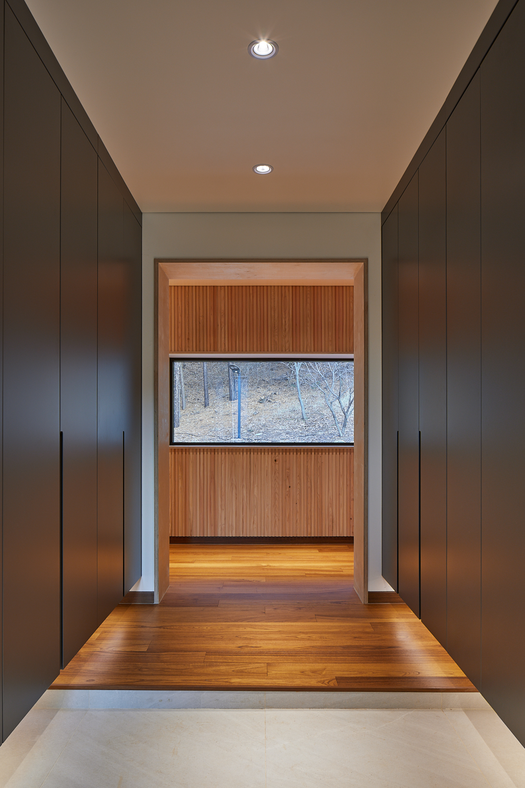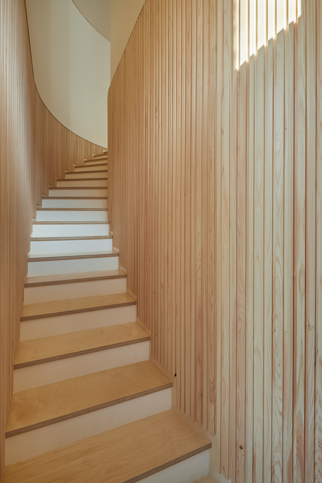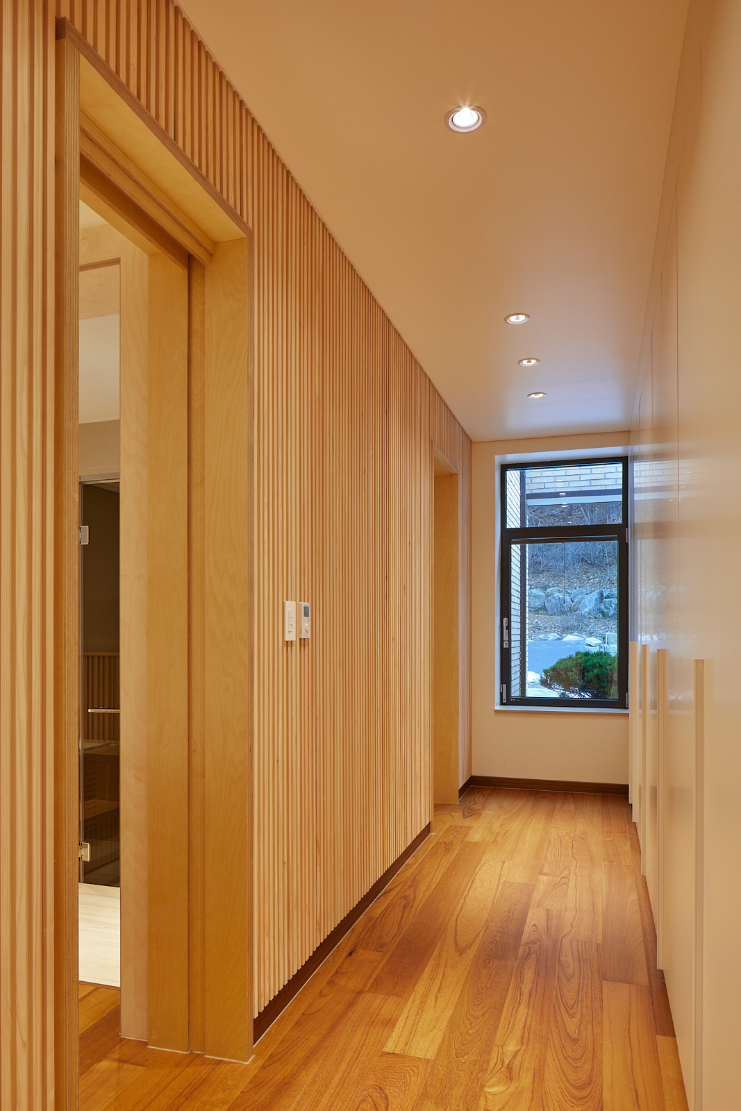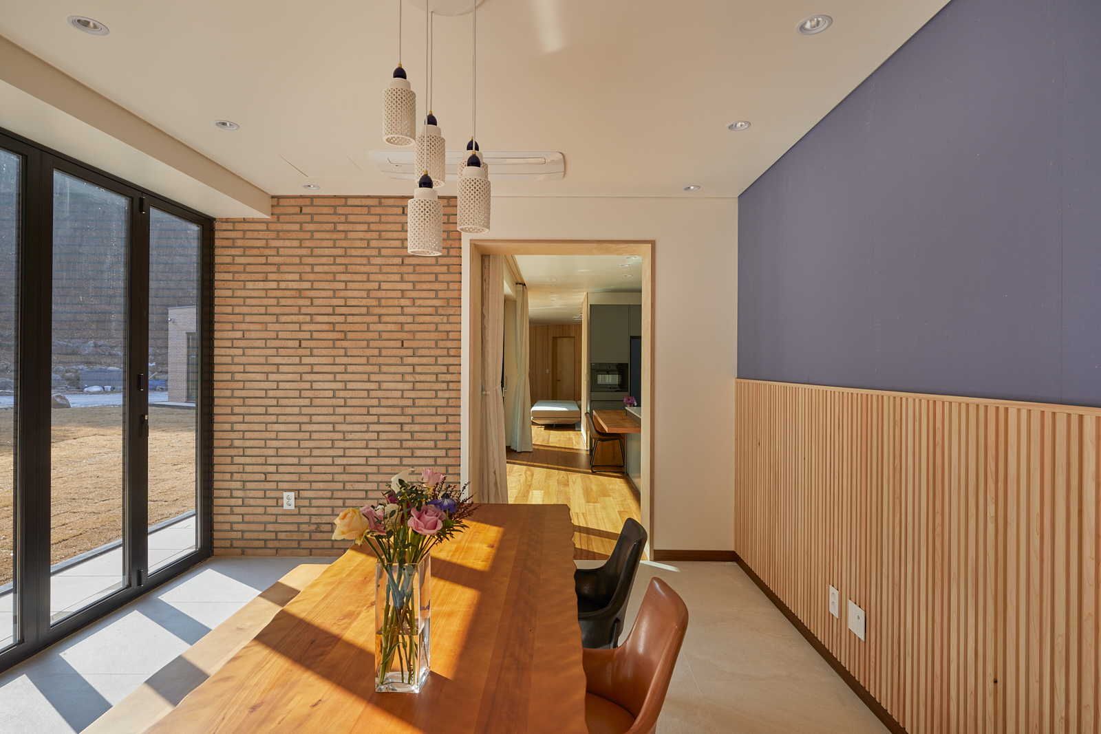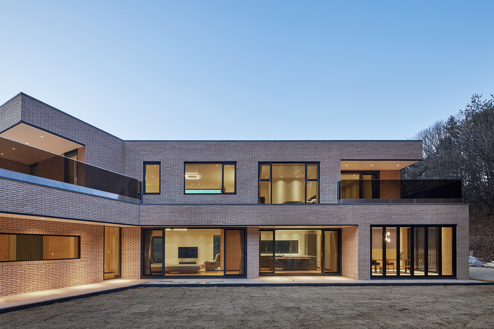 집은 진입도로를 등지고 나만의 내밀한 정원을 감싸 안는 형태가 되어 창을 절제한 북측면에 비해 편백나무 욕조가 있는 안방 욕실에도 부담 없이 큰 창을 두고, 식당은 두 면에 폴딩도어로 열 수 있게 하여 개방감을 극대화했다. 1층의 긴 처마는 집의 수평성을 강조하고 일조량을 조절할 뿐 아니라, 처마 아래 바닥의 포장을 따라 여유로운 외부 공간을 만든다. 2층 테라스의 기둥 없이 2.4미터가량 뻗은 처마는 개인적으로 가장 좋아하는 공간이다. 이 처마 아래에서의 날들이 가족들에게 아름다운 기억으로 새겨지길 바란다. 비가 오는 날, 유난히 햇살이 깊게 드리우는 날, 사방이 옅은 녹음으로 물드는 날, 각각의 날들이 시간이 흐르며 저마다의 색으로 중첩되어 갈 수 있도록 근사한 배경이 되어주는 일. 그게 건축이 해야 할 일 아닐까.