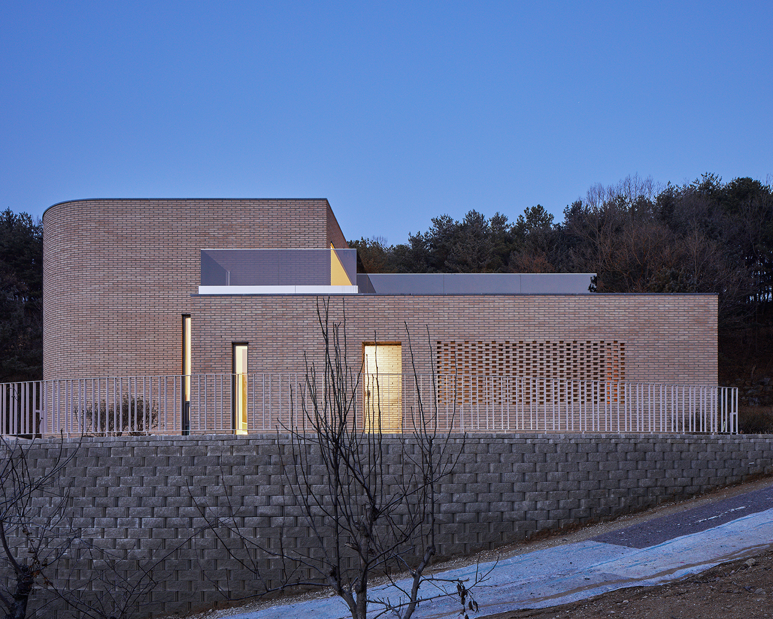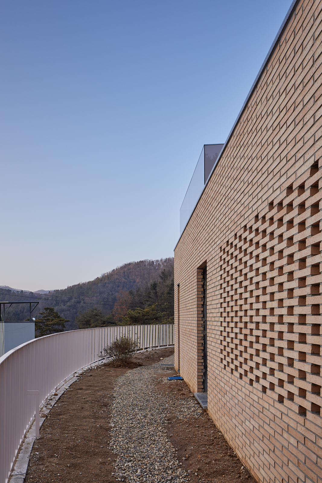 건축가로서 가질 법한 첫 번째 고민은 응당 저 4.5미터 가량의 보강토 옹벽을 어떻게 처리할 것인가였다.대지에 새겨진 인공의 흔적. 나 역시 지금부터 인공의 흔적을 남길 태세지만 솔직히는 보강토 블록 위에 앉은 전원주택의 상투성을 피하고 싶었다. 게다가 보강토 블록의 곡선은 비교적 넓은 대지에 비해서도 큰 반경으로 돌아가며 대지 전체를 정의하는 하나의 곡선을 그리고 있었다.