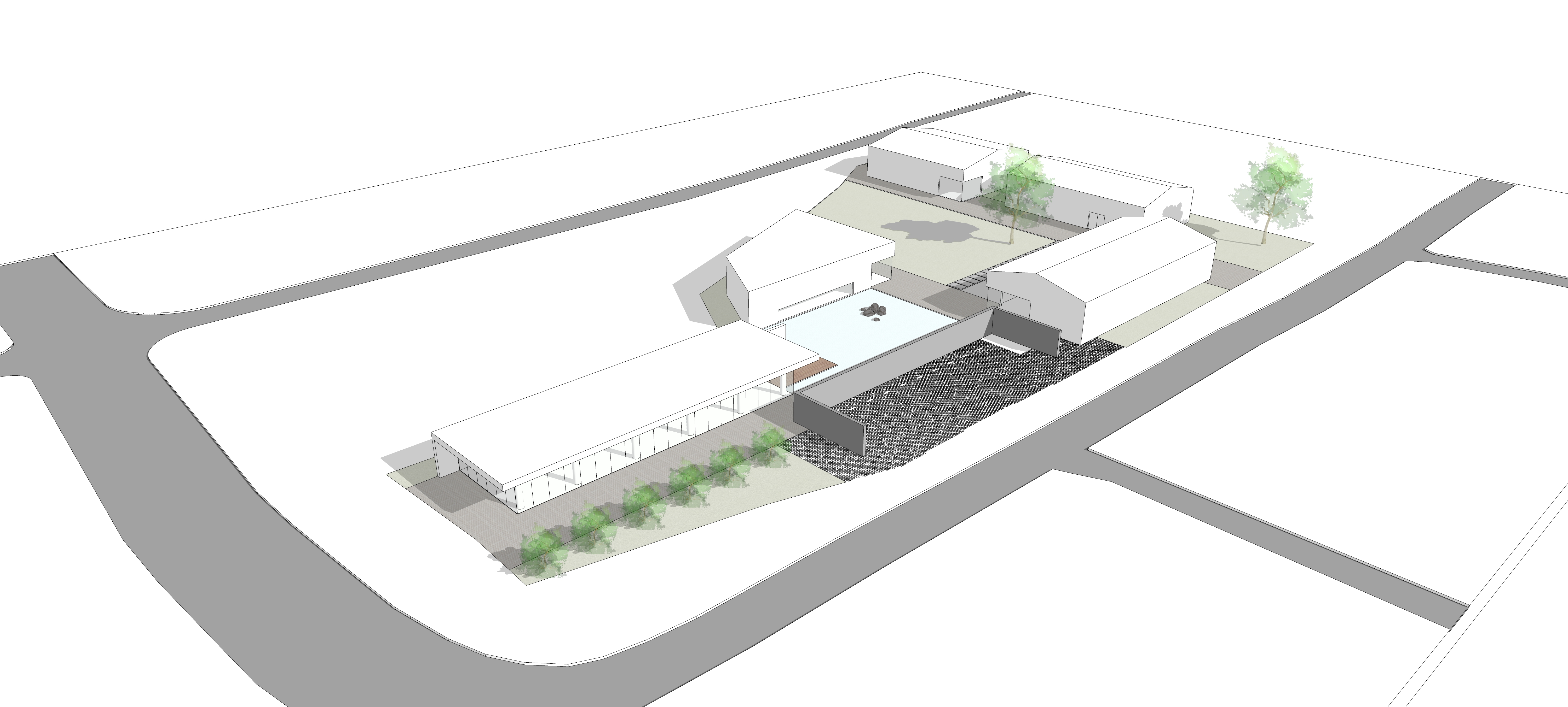 포천에 위치한 갤러리 겸 카페 공간으로 약 5,000제곱미터의 여유로운 대지안에서 각각의 프로그램을 가진 4~5개동들을 독립적이면서도 마당을 통해 유기적으로 배치하는 것이 주요한 계획의 목표였다. 자연취락지구가 포함된 계획관리지역으로, 건축물 용도를 검토하는 것, 방문자와 관리자 동선을 분리하는 것 외에는 크게 제약사항이 없이 자유로웠으나, 그만큼 자유롭게 Drop...