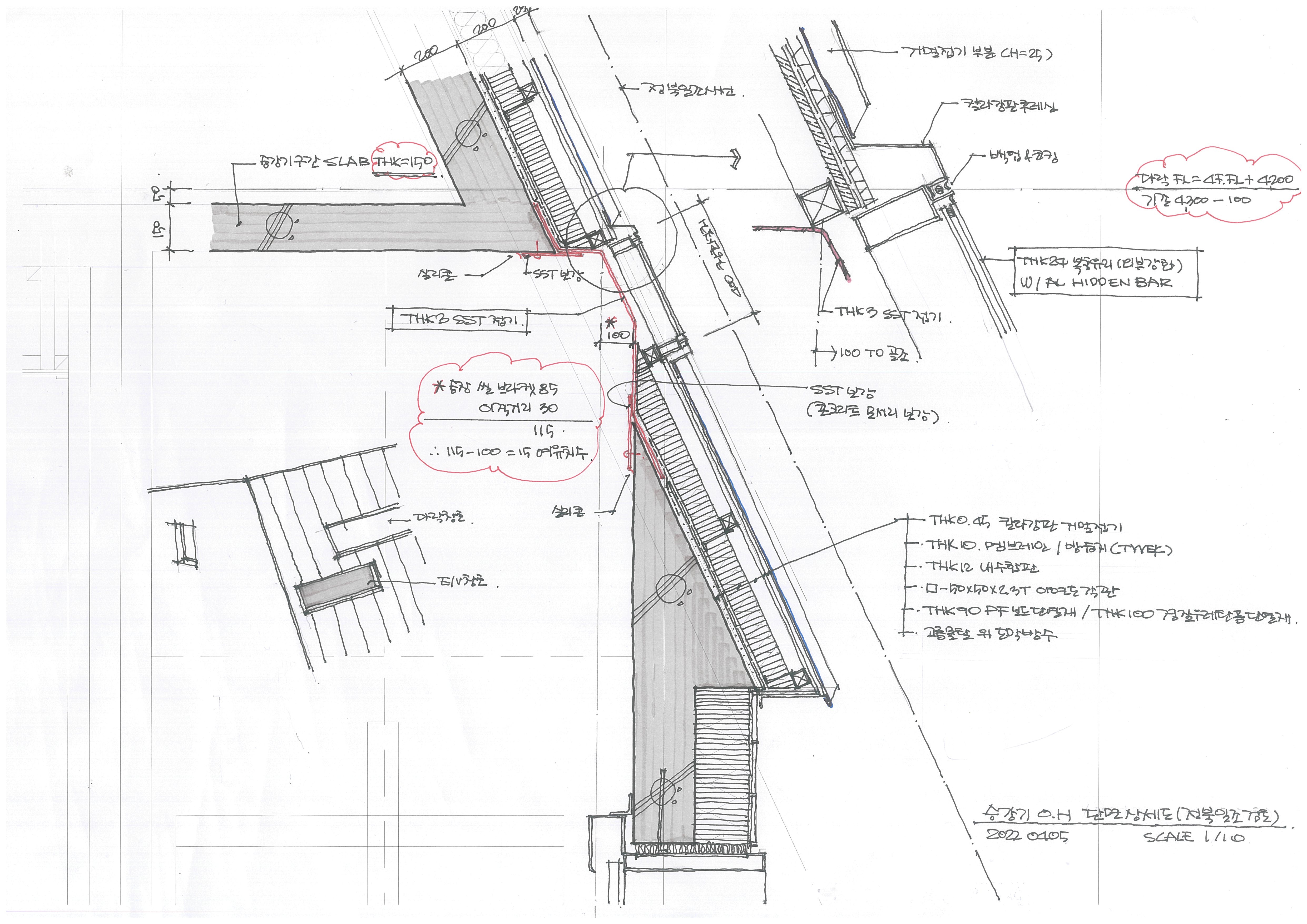나도 건축주도 온 정성을 쏟아 계획하고 짓지만 훗날 정취 없는, 낭만 없는 거리가 되어 버렸다고 누군가 노래하면 어떤 느낌이 들까. 다세대, 다가구, 상가주택을 대하면 언제나 법적 카테고리 안에 있는 건축가의 한계를 느끼기도 하고, 도시라는 큰 수채화에서 튀거나 모나지 않고 조화롭게 스며들 수 있는 적당한 농도의 붓터치가 되어야 겠다 생각한다. 어쩌면 이게 진짜 도시의 표정을 결정 짓는 건축일테니까.
