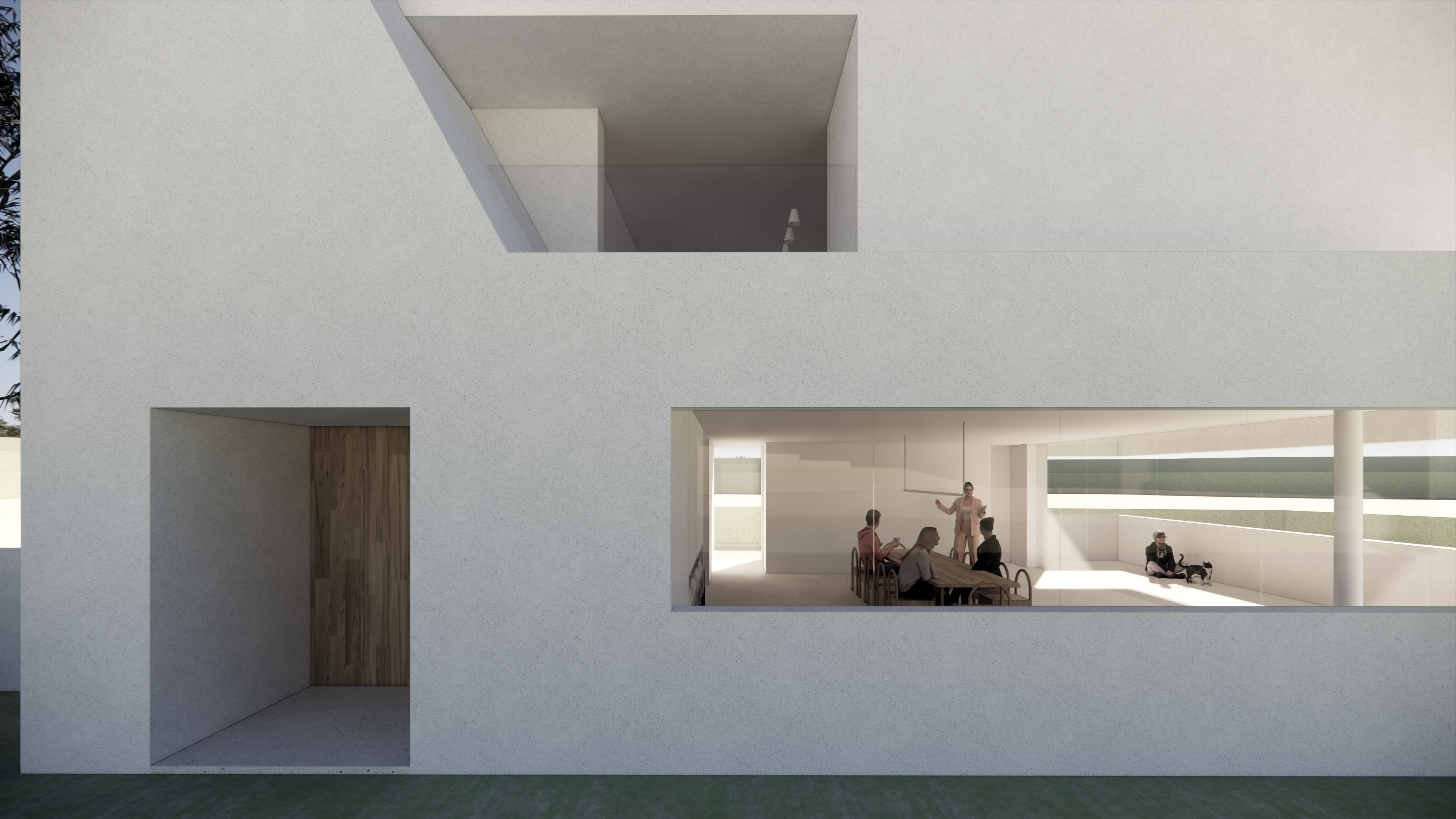 좁은 진입로를 지나면 널찍하면서 아늑한 대지가 숨어 있다. 처음 요구사항은 2층짜리 주택이어서 1층을 건축주에게 필요한 모임방으로 두고 2층을 침실과 살림공간으로 구분하였으나... 전면적인 설계변경의 먹구름이 드리우고 있었으니...