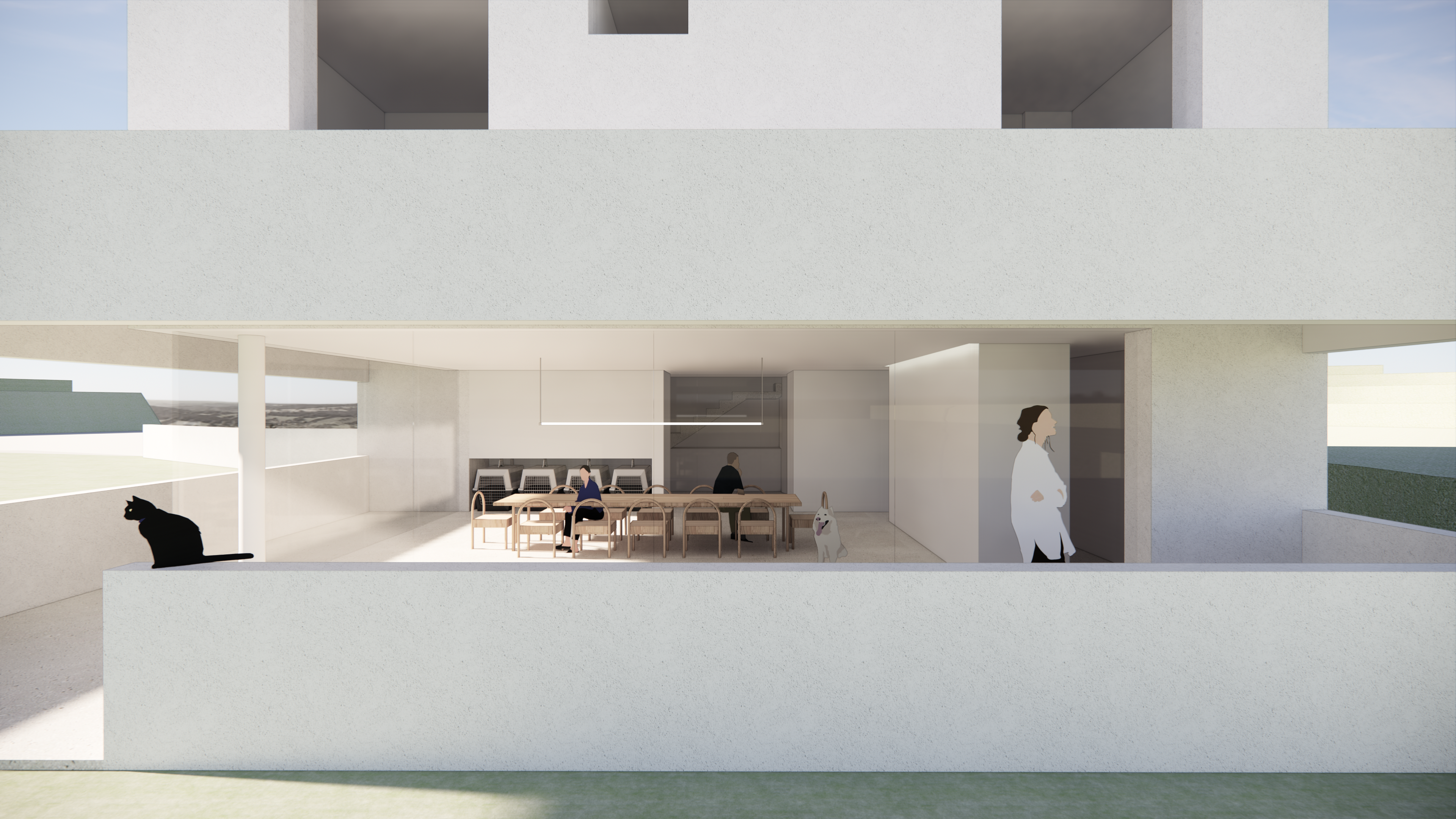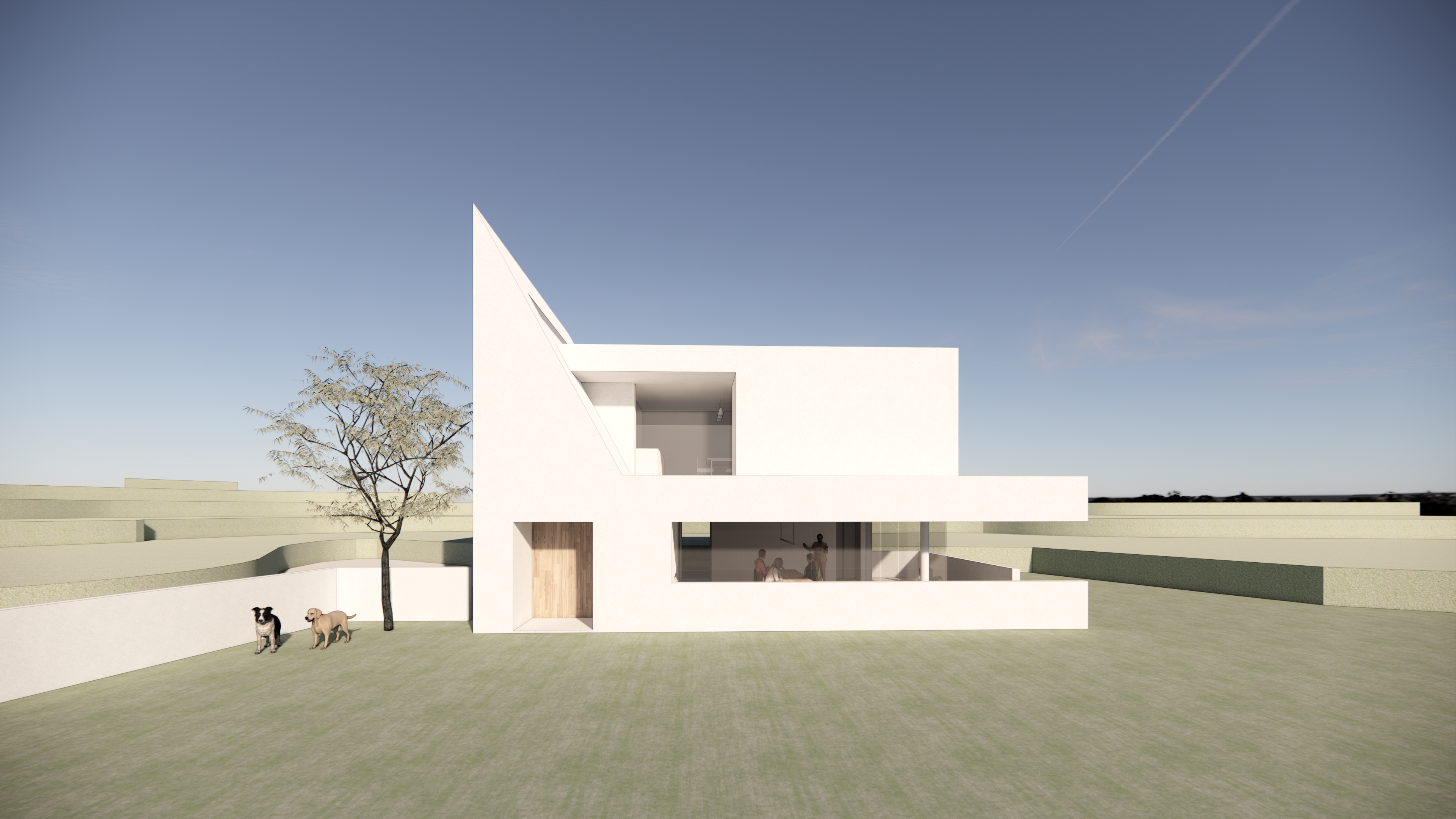 좁은 진입로를 지나면 널찍하면서 아늑한 대지가 숨어 있다. 처음 요구사항은 2층짜리 주택이어서 1층을 건축주에게 필요한 모임방으로 두고 2층을 침실과 살림공간으로 구분하였으나... 전면적인 설계변경의 먹구름이 드리우고 있었으니...